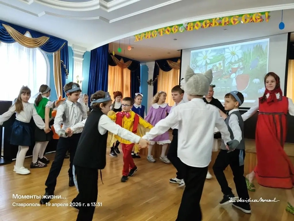 Показали инсценировку отрывка из рассказа А.П. Чехова «Студент» и Пасхальную инсценировку по сказке К.И. Чуковского «Муха – Цокотуха».